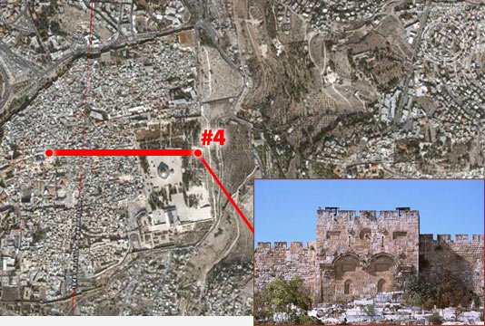 We notice that placement of Golgotha again is due West of Solomon’s Temple if you project a straight line to the East Gate (No. 4) on the far side of the Old Jerusalem wall (Still present)