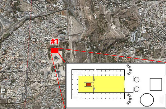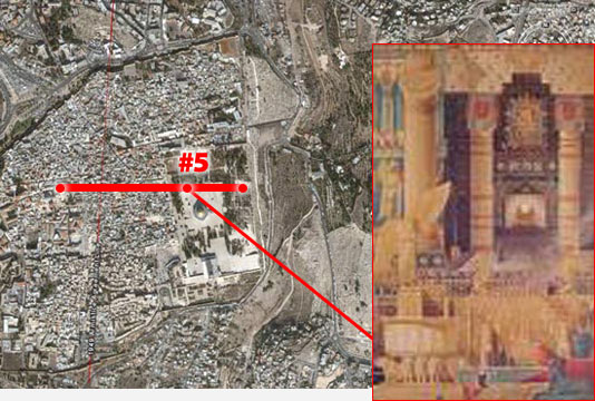 That line would pass through the exact center of the Temple and also through the center of where the Ark of the Covenant (No. 5) would have been placed in the center of the “Most Holy of Holies”.